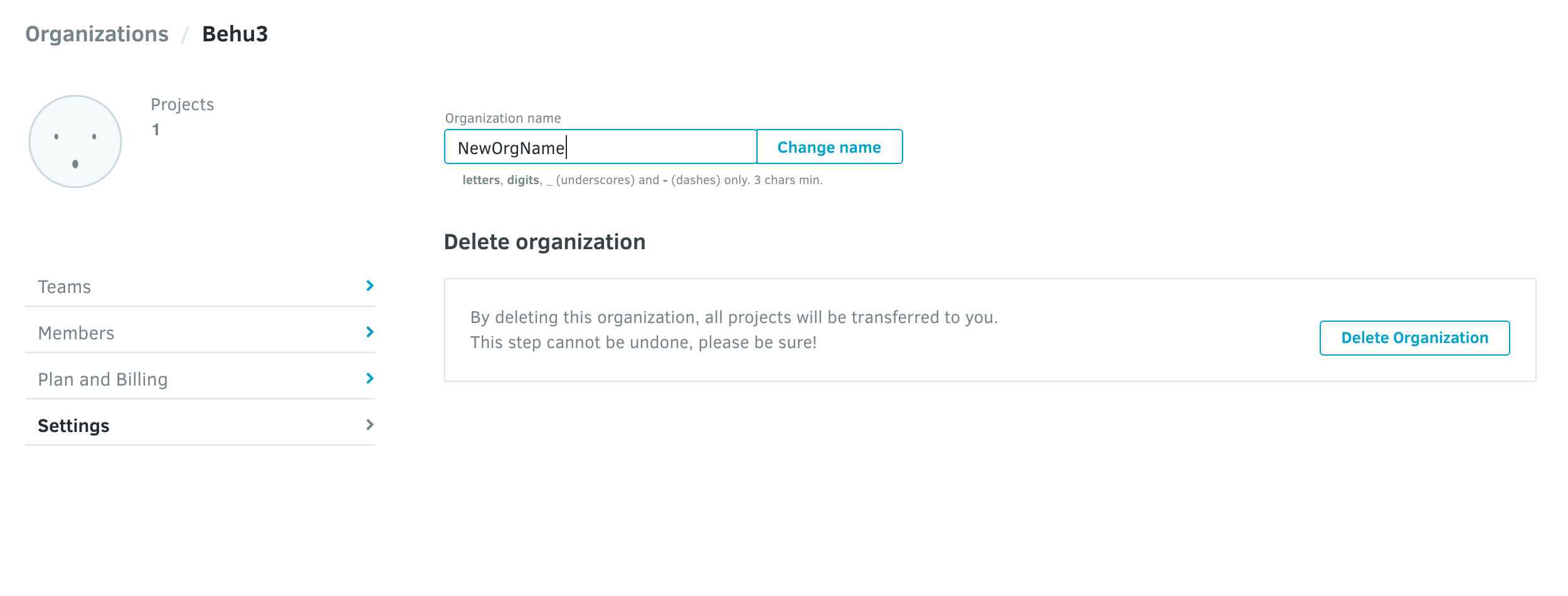 To create an organization, click on your avatar and select Organizations. Type the name in the Create new organization field and click on Create New.