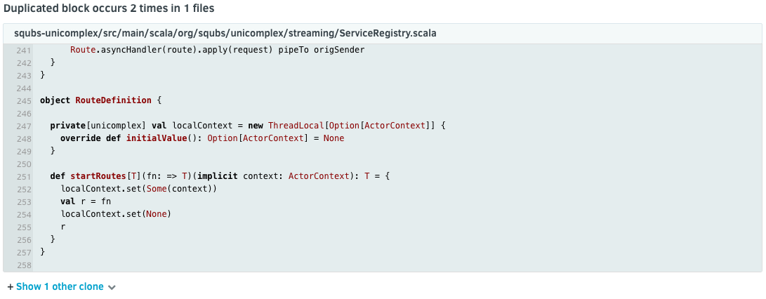 As for the duplication tab, here you can find duplicated code and links to its clones.